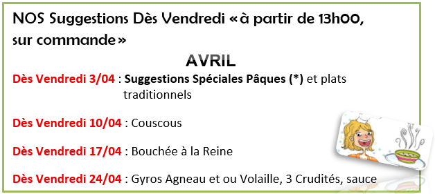 Plats dès le 1er avril