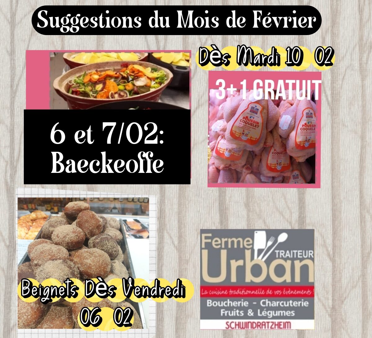 Vous êtes ici › Boucherie & Maraîcher à Schwindratzheim › Plats › SUGGESTIONS Du VENDREDI ET SAMEDI DU MOIS DE FÉVRIER 2026